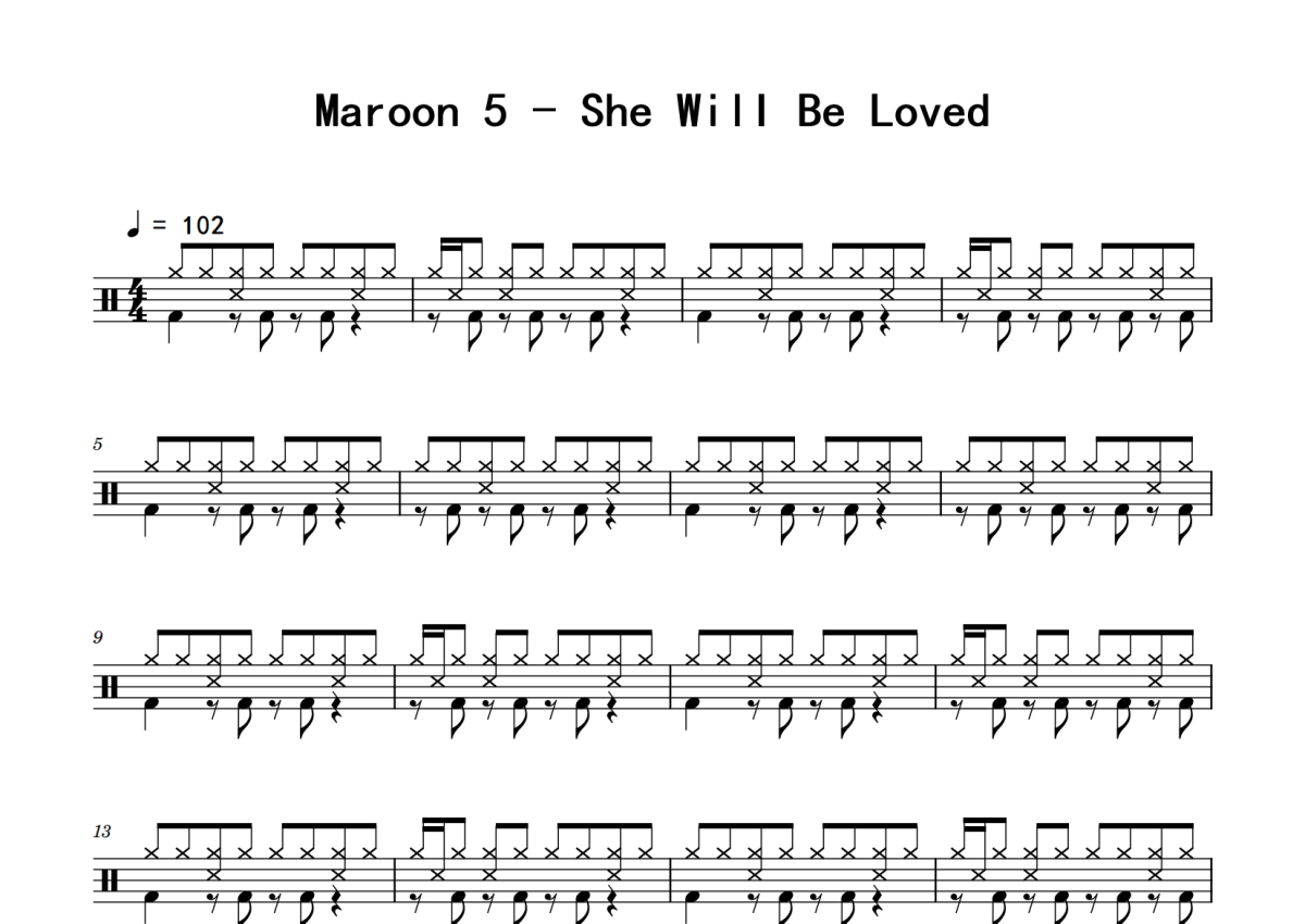 Maroon 5《She Will Be Loved》鼓谱 - 架子鼓谱