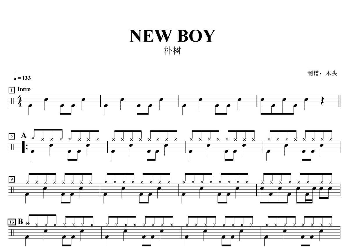 朴树《NEW BOY》鼓谱 - 架子鼓谱