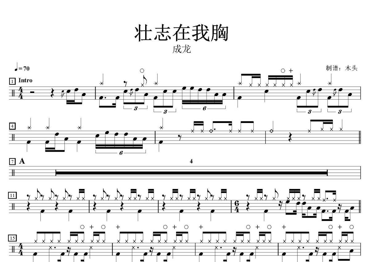 成龙《壮志在我胸》鼓谱 - 架子鼓谱