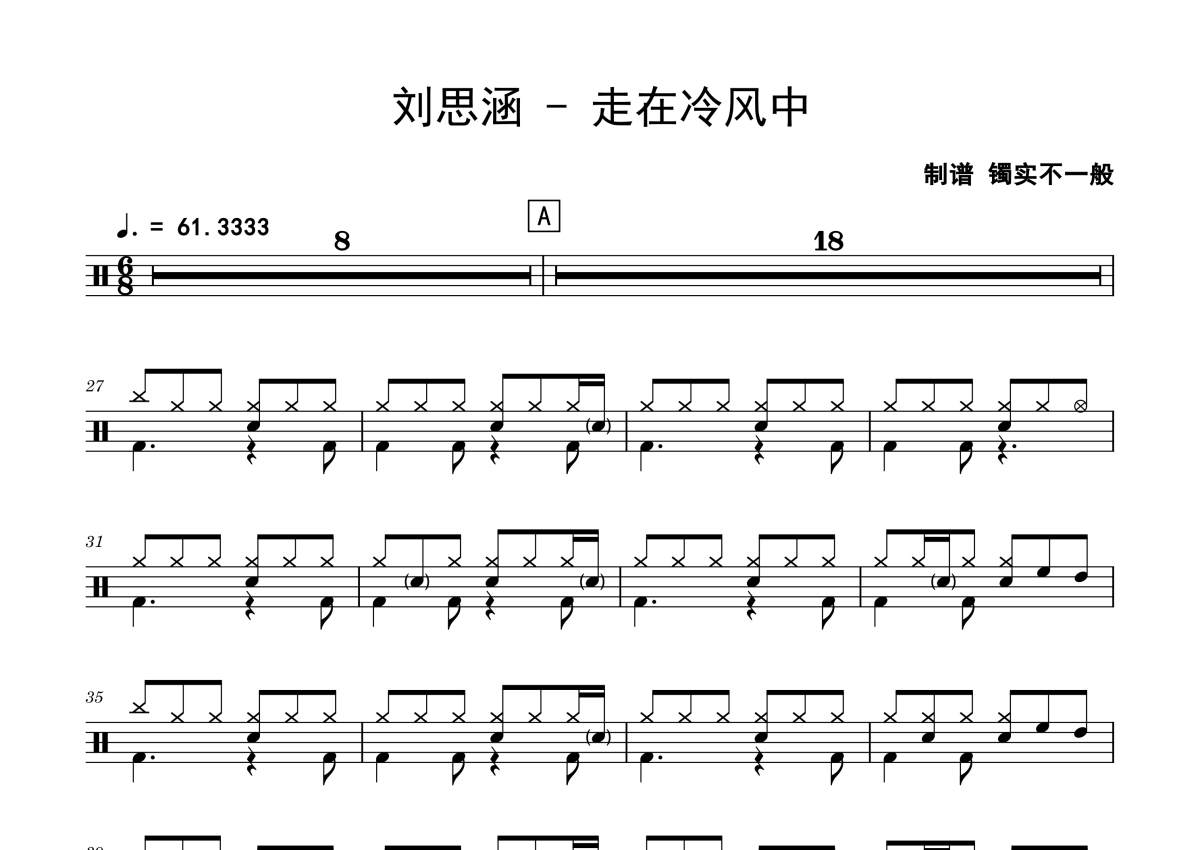 刘思涵《走在冷风中》鼓谱 - 架子鼓谱