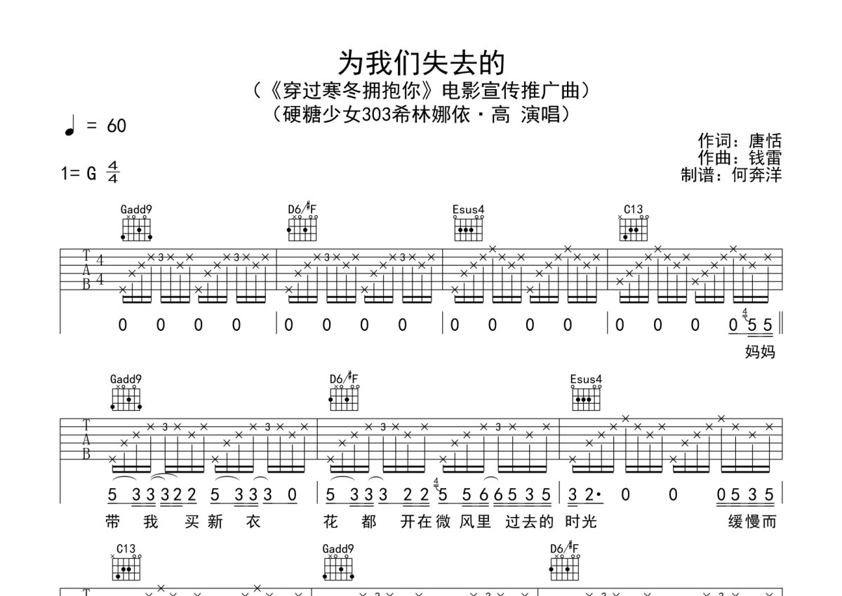 硬糖少女303希林娜依高《为我们失去的》吉他谱 - G调弹唱六线谱
