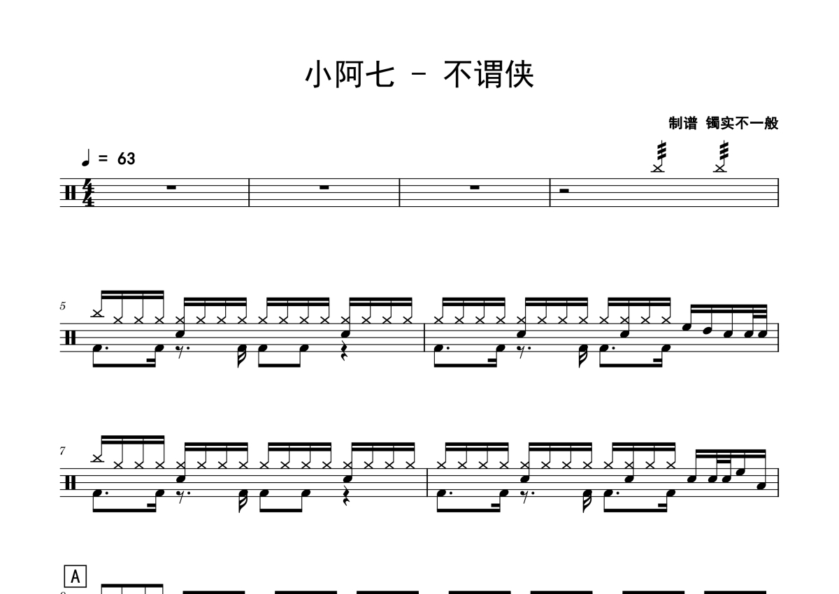 小阿七《不谓侠》鼓谱 - 架子鼓谱