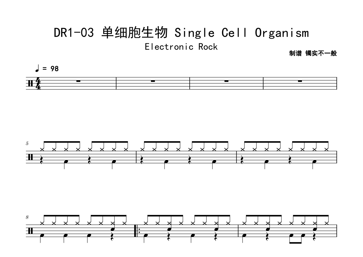 DR1-03《单细胞生物 Single Cell Organism》鼓谱 - 架子鼓谱