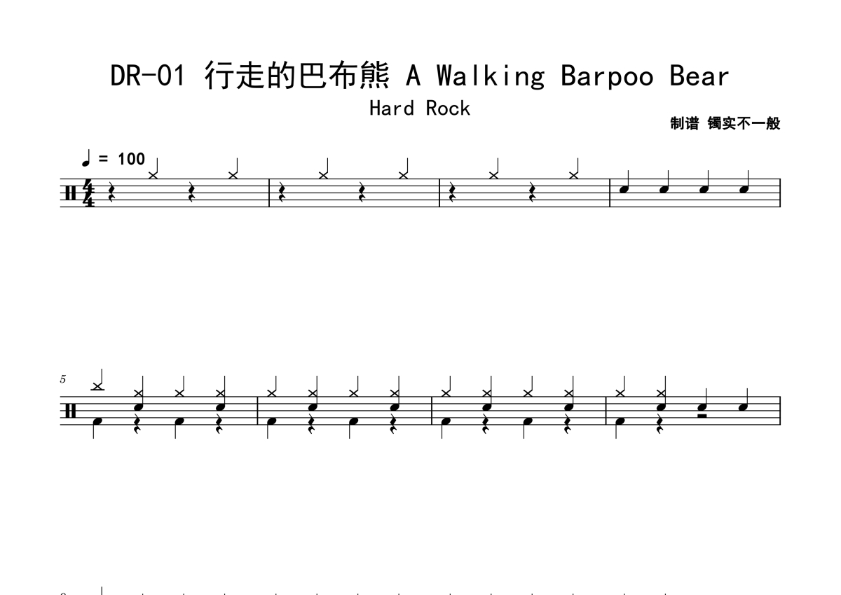 DR-01《行走的巴布熊 A Walking Barpoo Bear》鼓谱 - 架子鼓谱