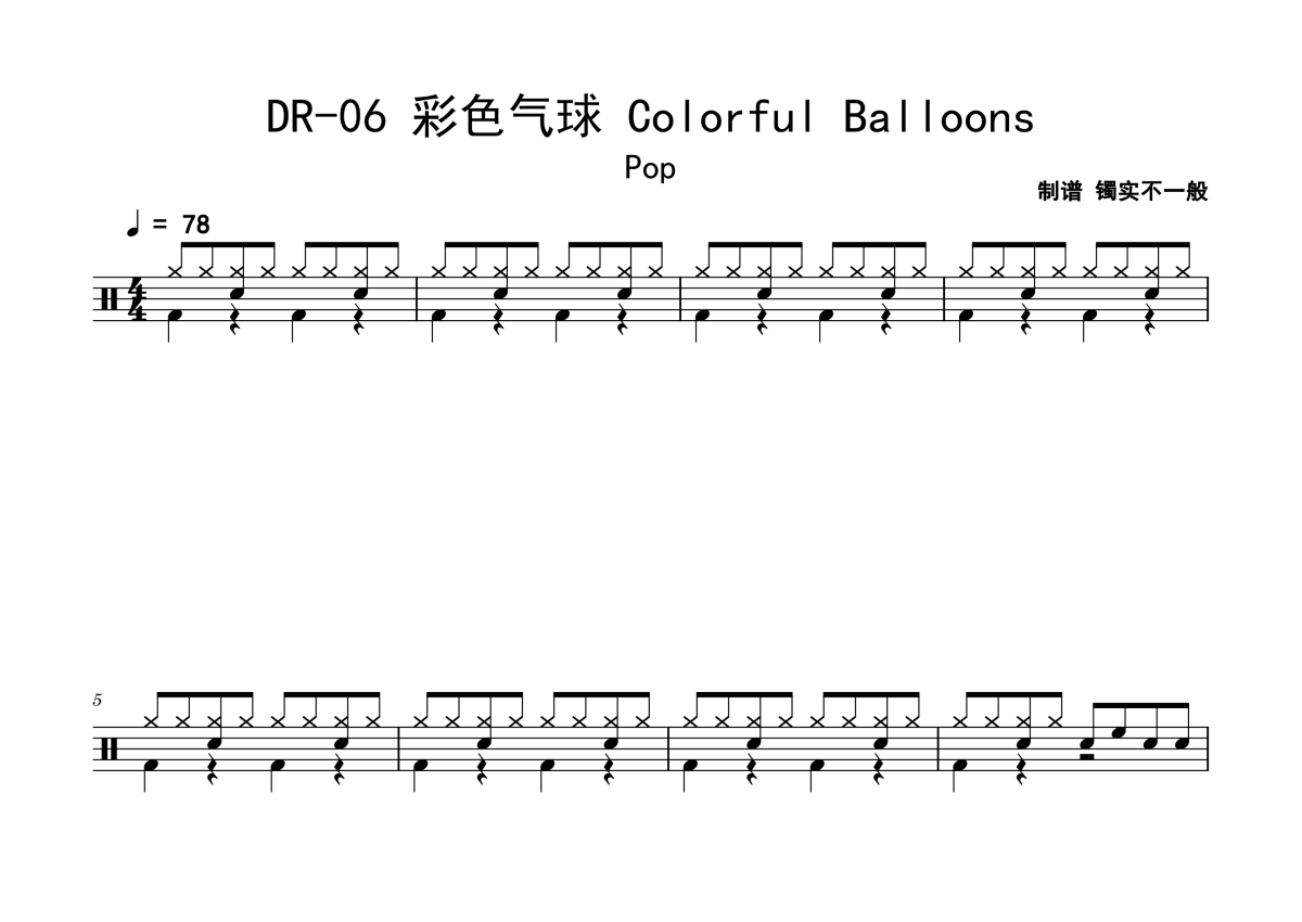 DR-06《彩色气球 Colorful Balloons》鼓谱 - 架子鼓谱