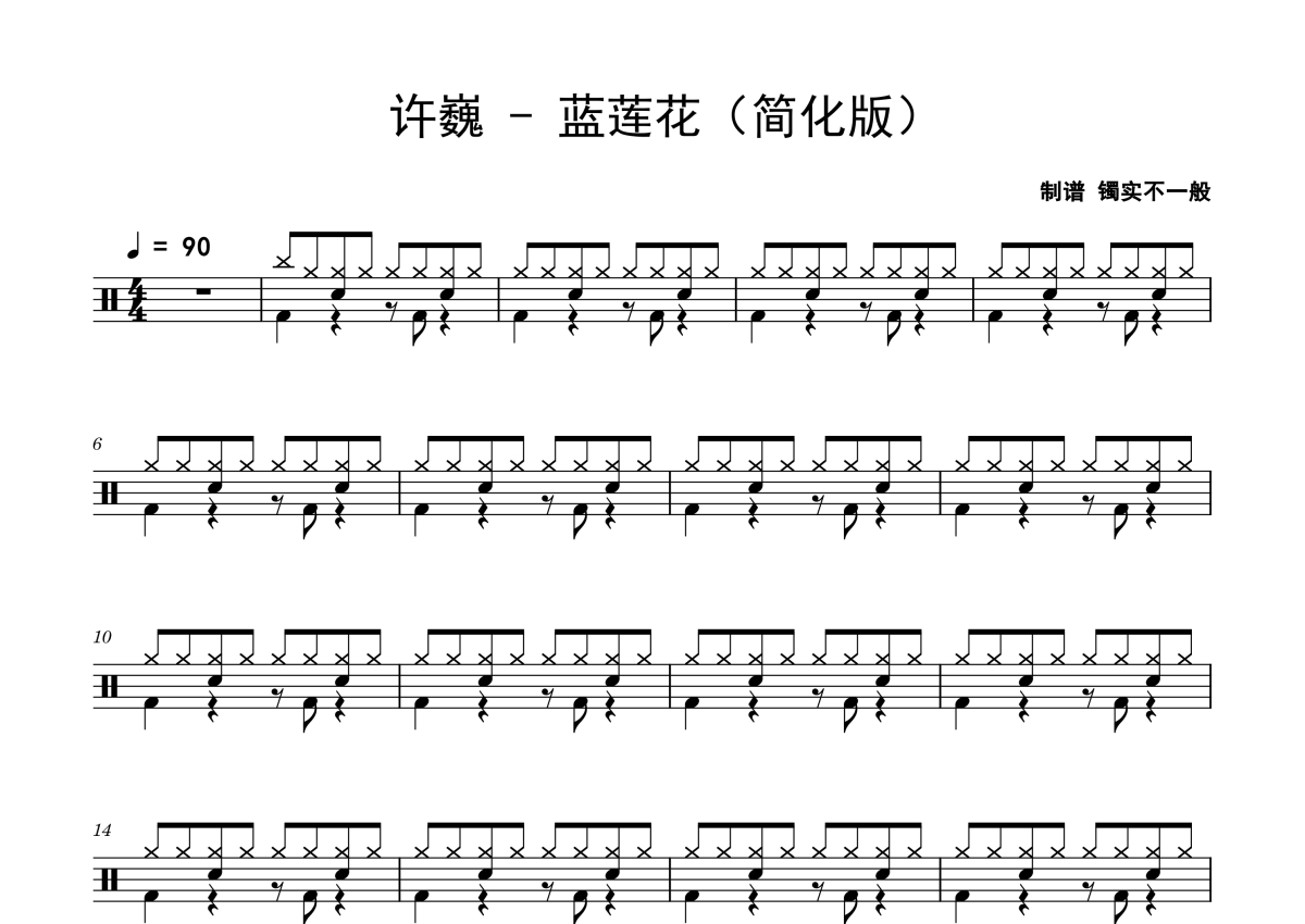 许巍《蓝莲花》鼓谱 - 架子鼓谱 - 简化版