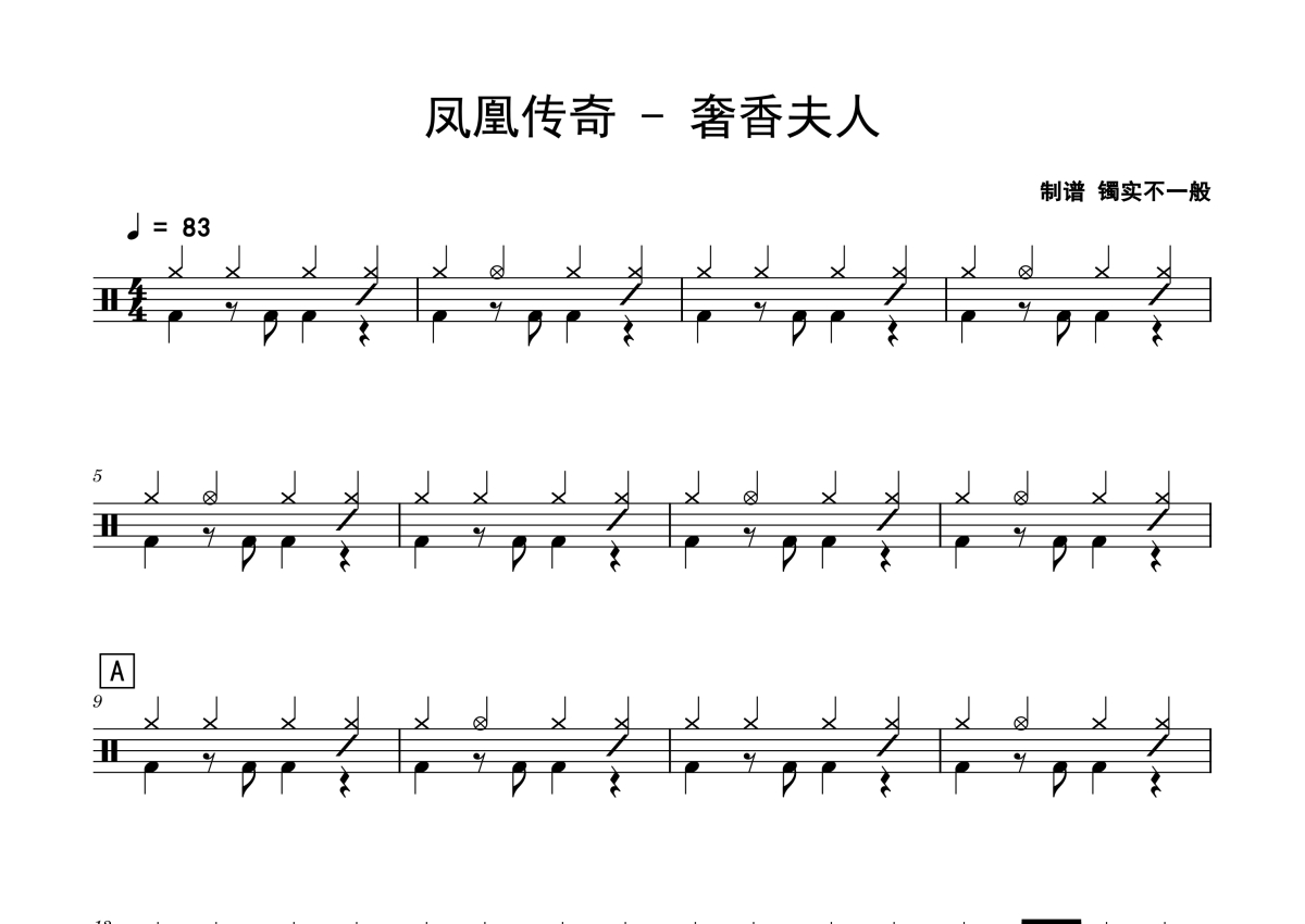 凤凰传奇《奢香夫人》鼓谱 - 架子鼓谱