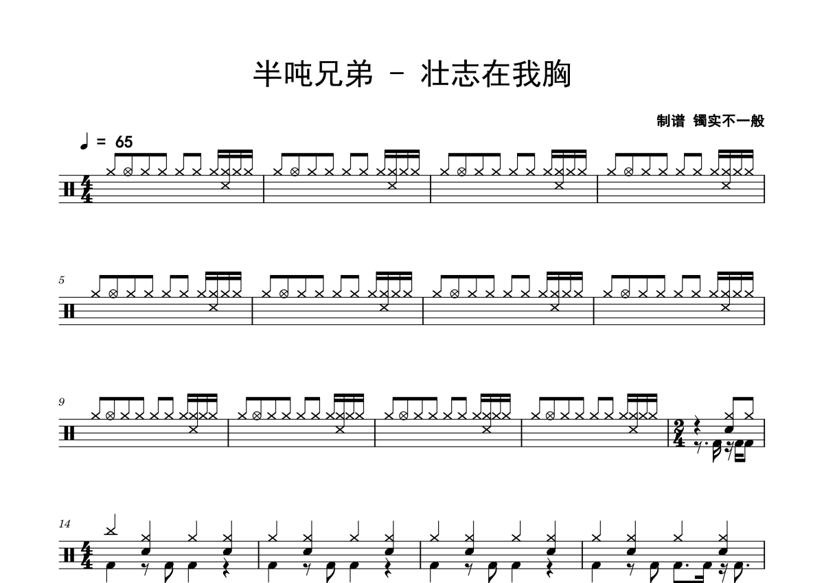 半吨兄弟《壮志在我胸》鼓谱 - 架子鼓谱