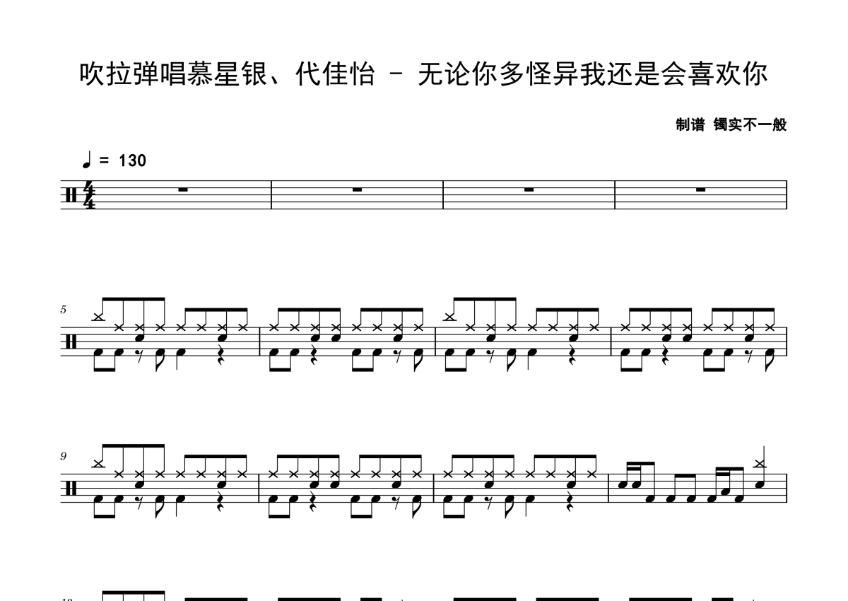 吹拉弹唱慕星银、代佳怡《无论你多怪异我还是会喜欢你》鼓谱 - 架子鼓谱