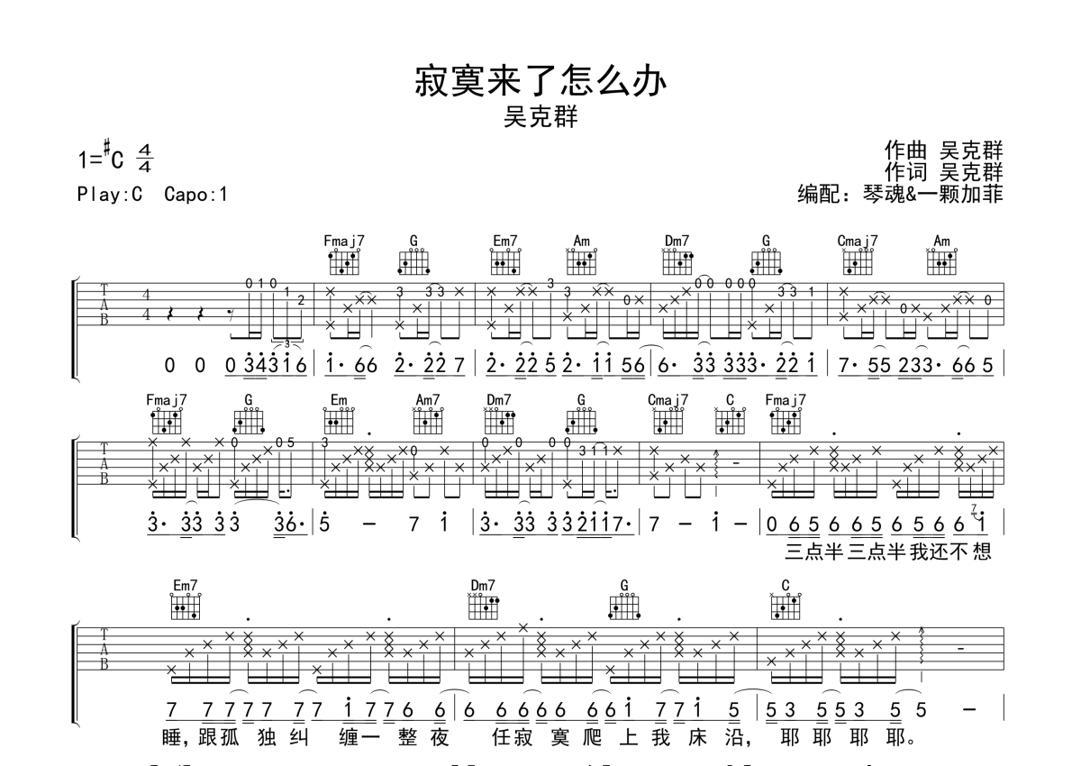 吴克群《寂寞来了怎么办》吉他谱 - C调弹唱六线谱