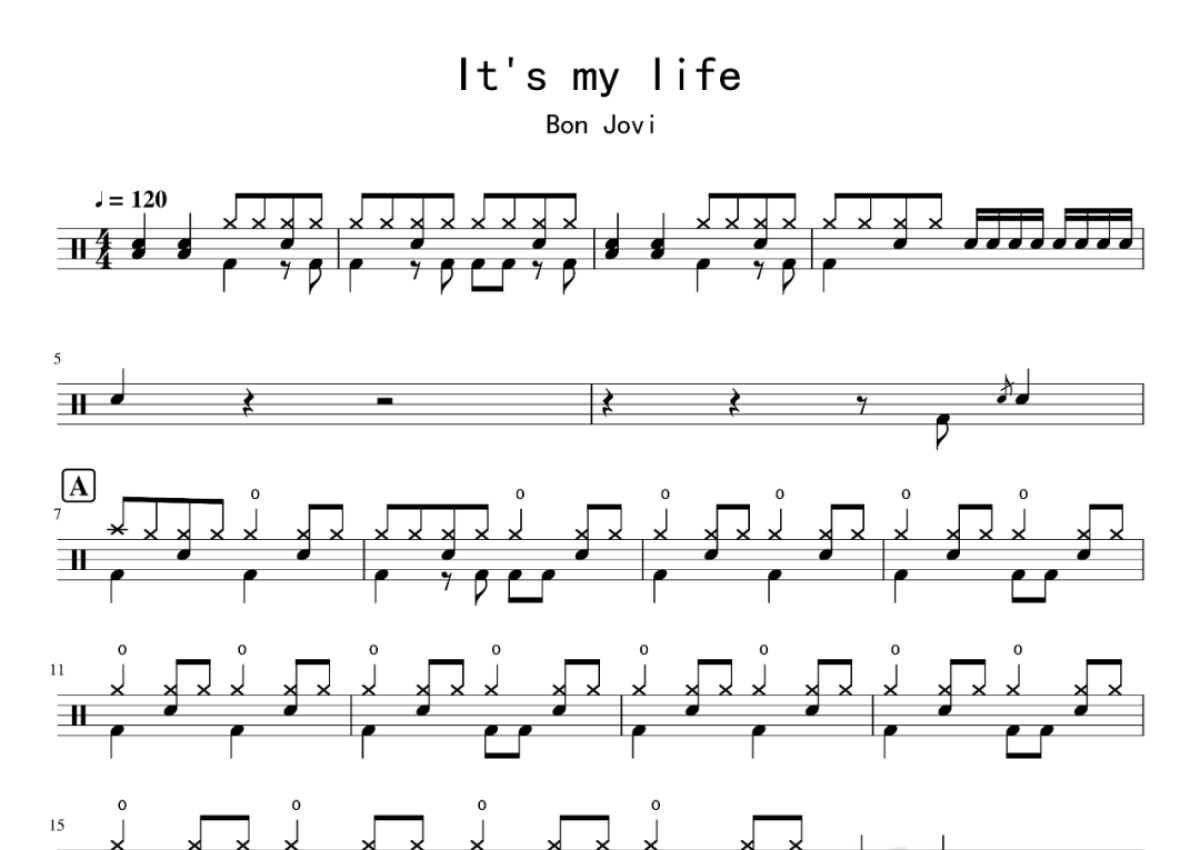 Bon Jovi《It's My Life》鼓谱 - 架子鼓谱
