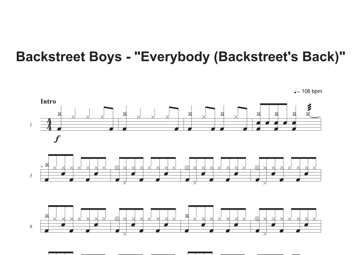 Backstreet Boys《Everybody (Backstreet's Back)》鼓谱 - 架子鼓谱