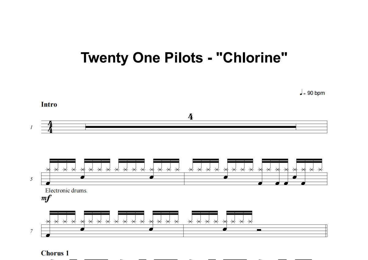 Twenty One Pilots《Chlorine》鼓谱 - 架子鼓谱