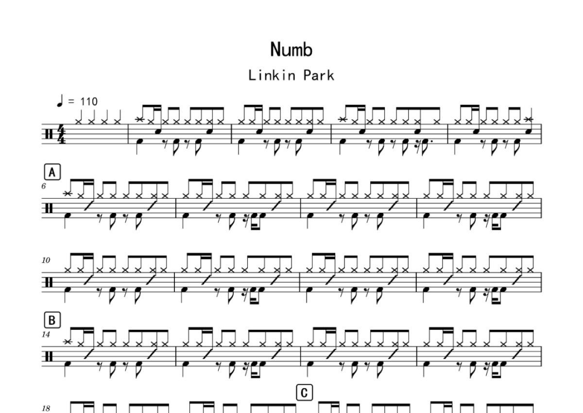 Linkin Park《Numb》鼓谱 - 架子鼓谱