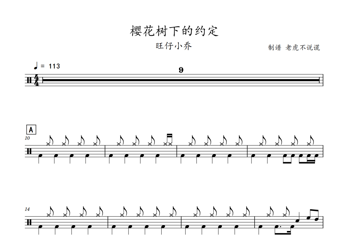 旺仔小乔《樱花树下的约定》鼓谱 - 架子鼓谱