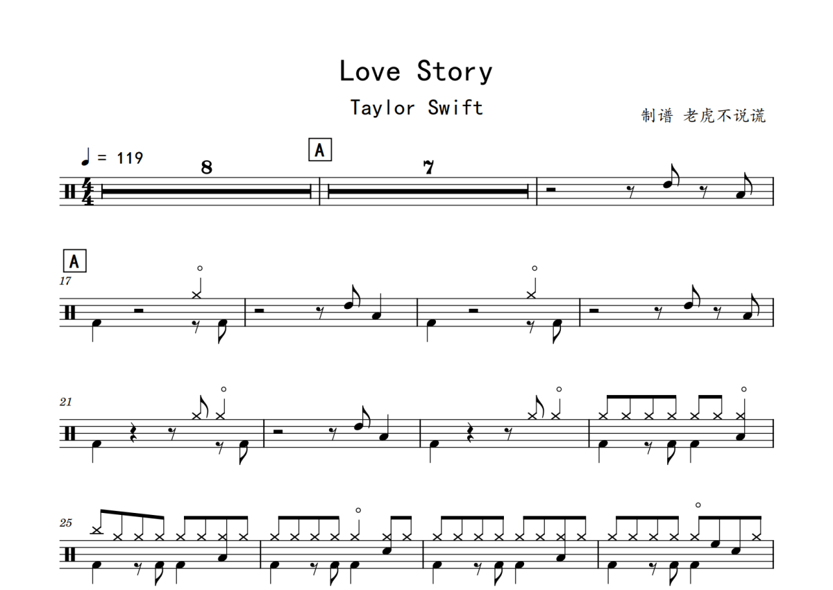 Taylor Swift《Love Story》鼓谱 - 架子鼓谱