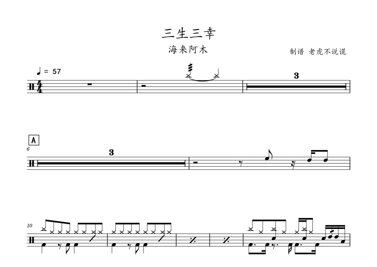 海来阿木《三生三幸》鼓谱 - 架子鼓谱