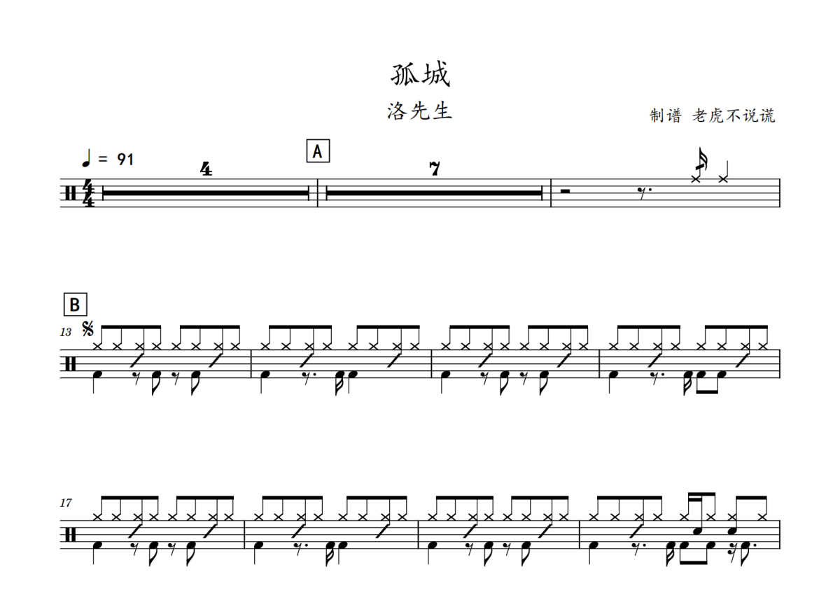 洛先生《孤城》鼓谱 - 架子鼓谱