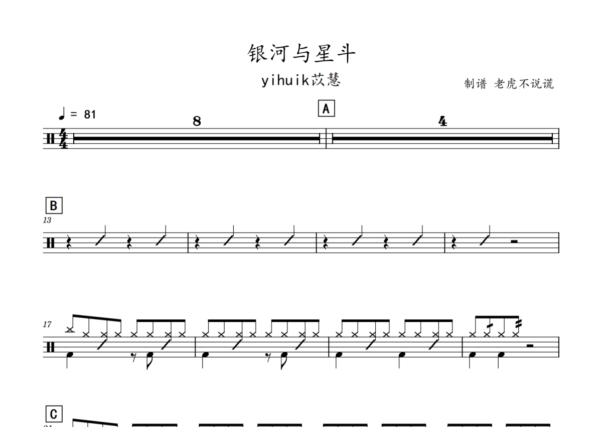 yihuik苡慧《银河与星斗》鼓谱 - 架子鼓谱
