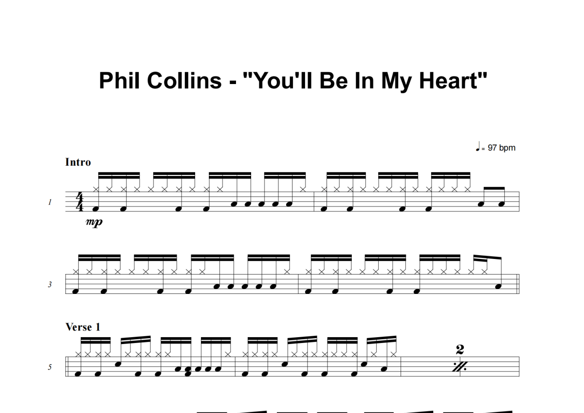 Phil Collins《You'll Be In My Heart》鼓谱 - 架子鼓谱