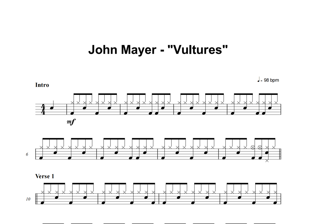 John Mayer《Vultures》鼓谱 - 架子鼓谱
