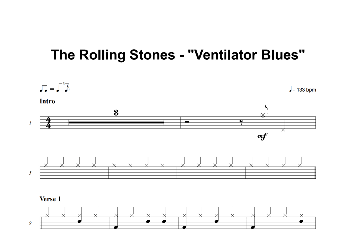 The Rolling Stones《Ventilator Blues》鼓谱 - 架子鼓谱