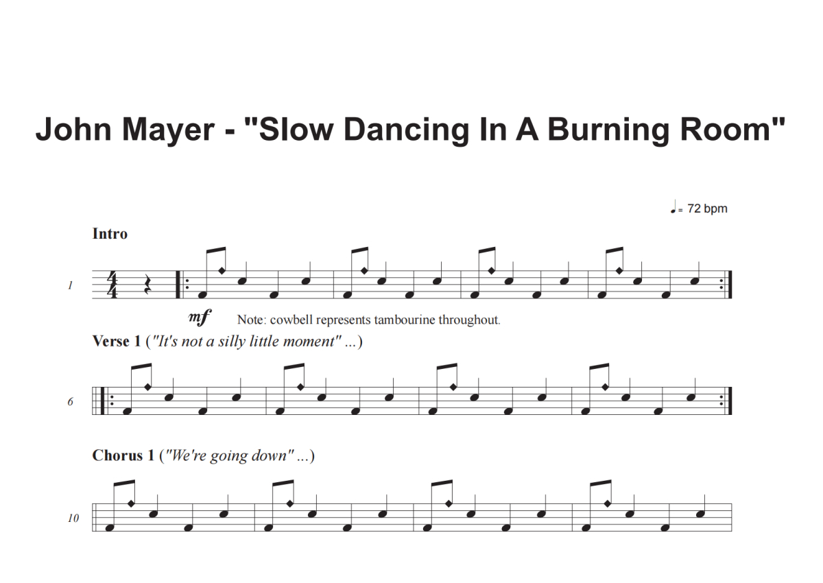 John Mayer《Slow Dancing In A Burning Room》鼓谱 - 架子鼓谱