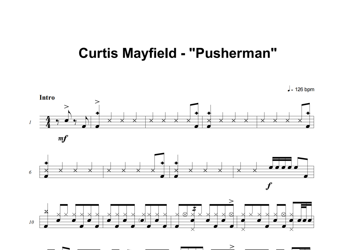 Curtis Mayfield《Pusherman》鼓谱 - 架子鼓谱