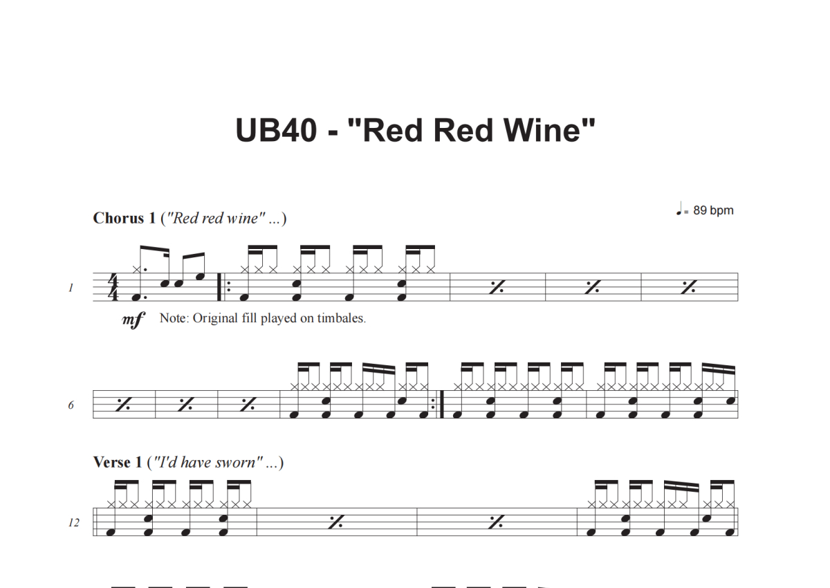 UB40《Red Red Wine》鼓谱 - 架子鼓谱