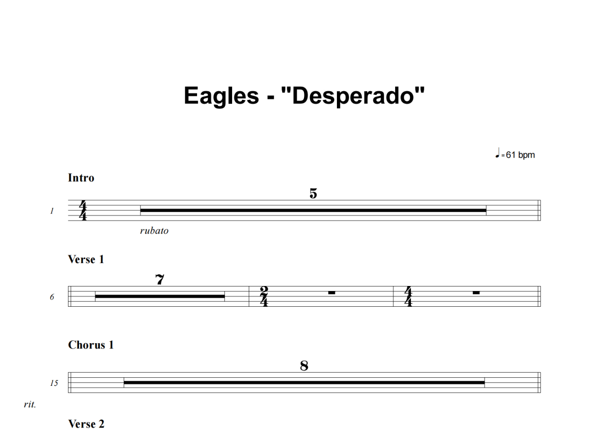Eagles《Desperado》鼓谱 - 架子鼓谱