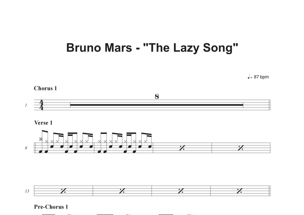 Bruno Mars《The Lazy Song》鼓谱 - 架子鼓谱