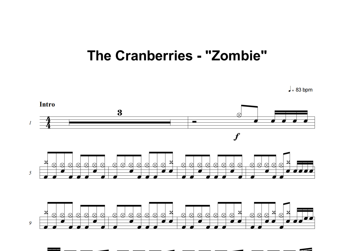 The Cranberries《Zombie》鼓谱 - 架子鼓谱