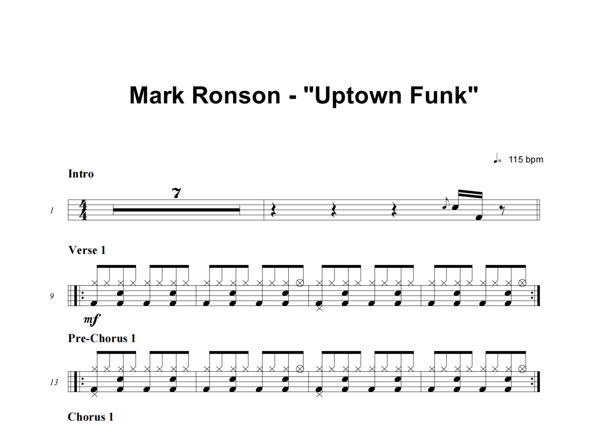 Mark Ronson《Uptwon Funk》鼓谱 - 架子鼓谱