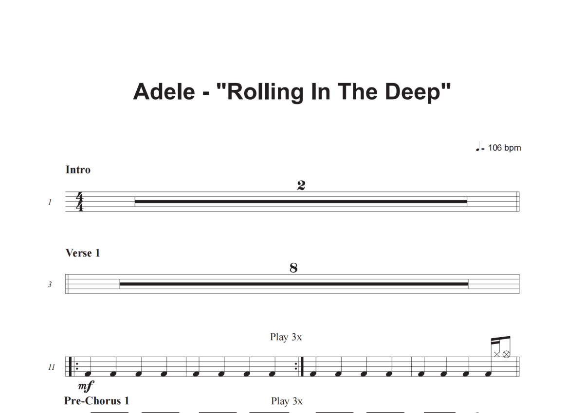 Adele《Rolling In The Deep》鼓谱 - 架子鼓谱