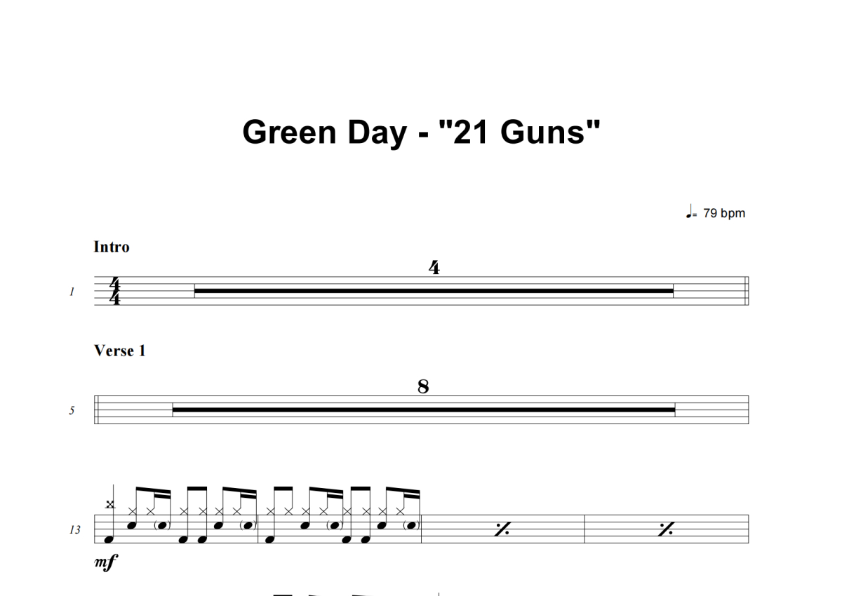 Green Day《21 Guns》鼓谱 - 架子鼓谱