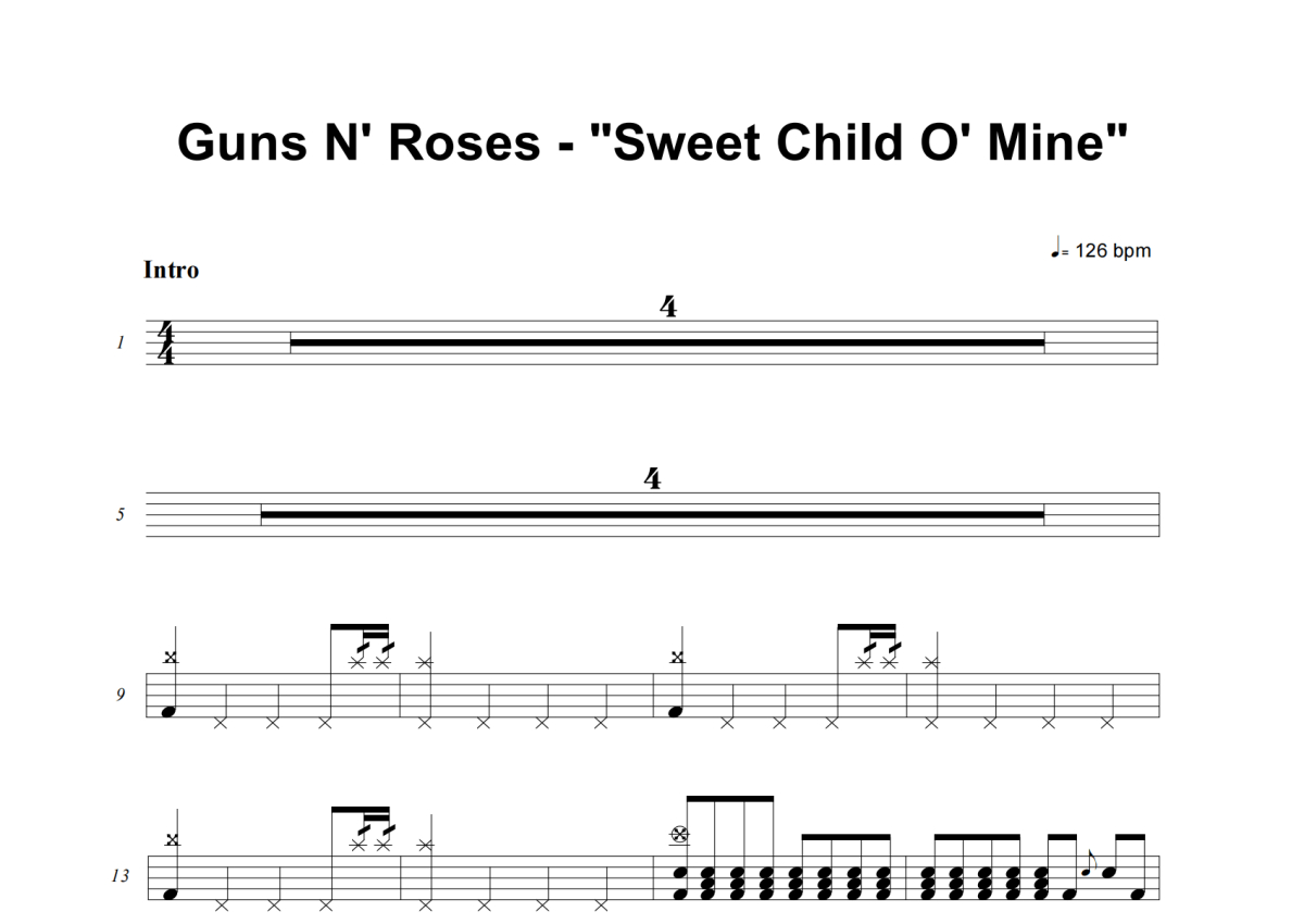 Guns N_ Roses《Sweet Child O_ Mine》鼓谱 - 架子鼓谱