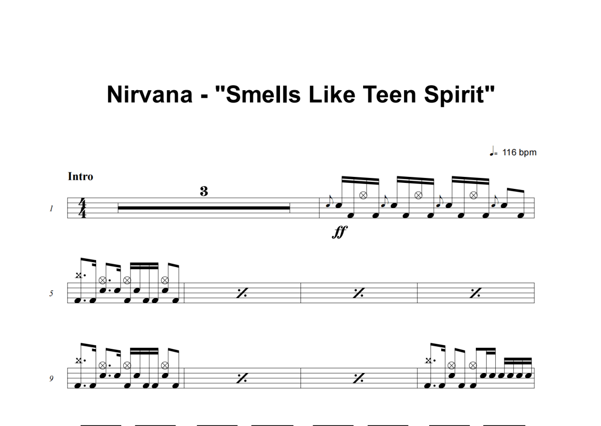 Nirvana《Smells Like Teen Spirit》鼓谱 - 架子鼓谱