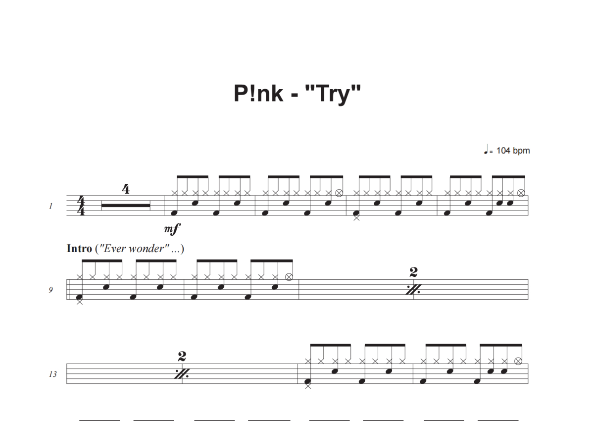 P!nk《Try》鼓谱 - 架子鼓谱