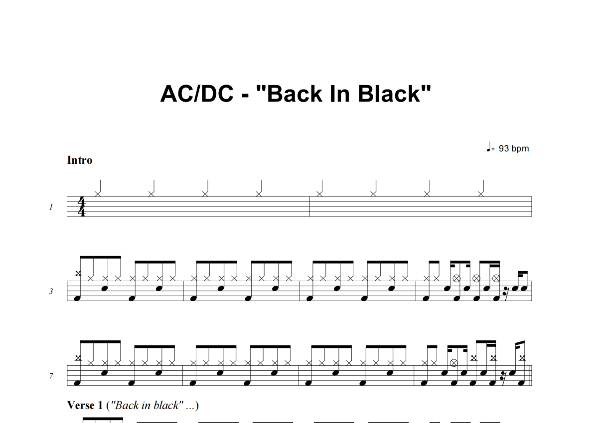 AC/DC《Back in Black》鼓谱 - 架子鼓谱
