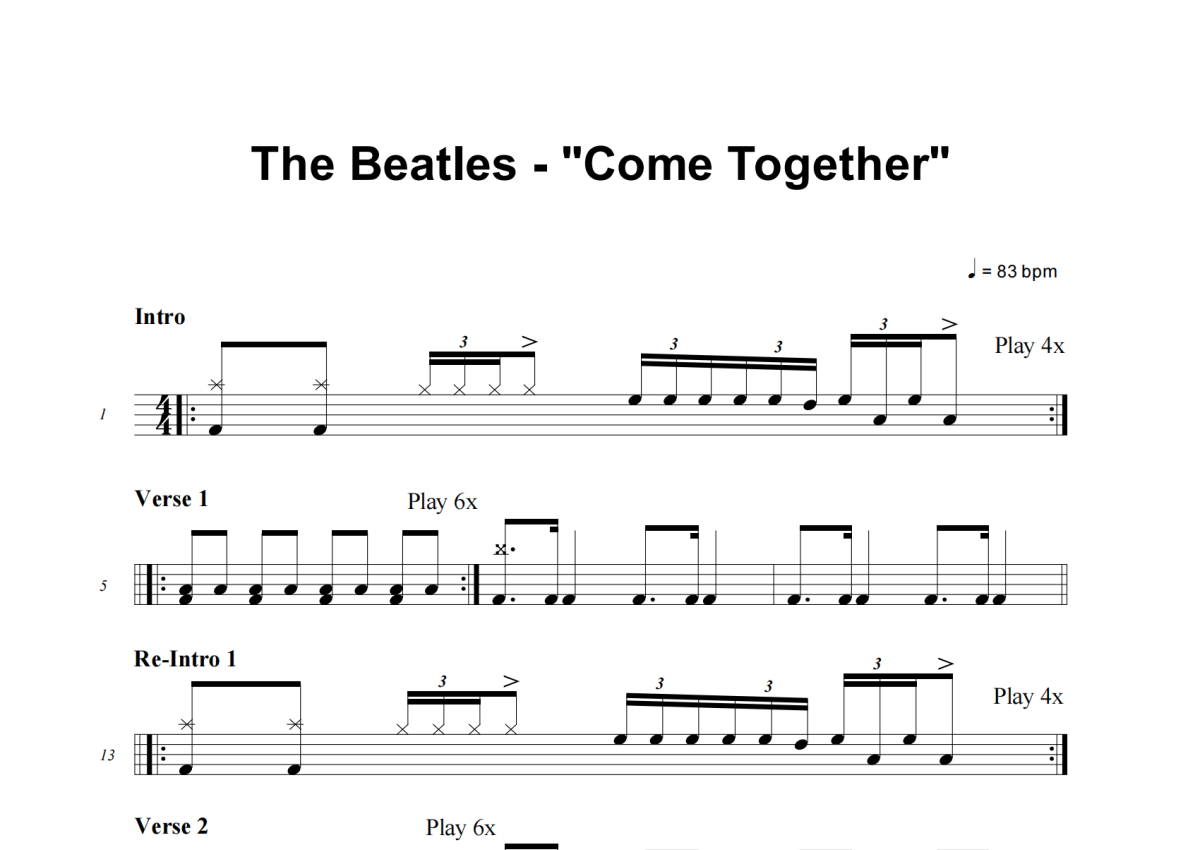 The Beatles《Come Together》鼓谱 - 架子鼓谱