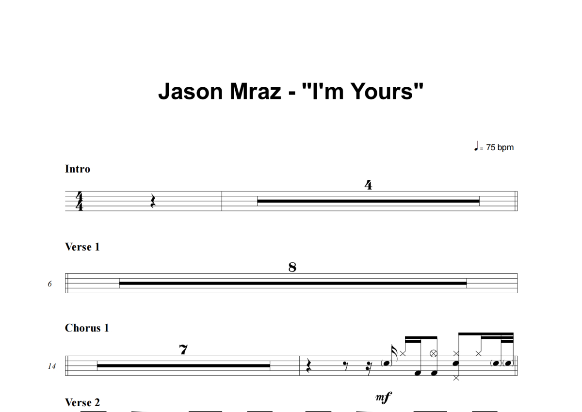 Jason Mraz《I'm Yours》鼓谱 - 架子鼓谱