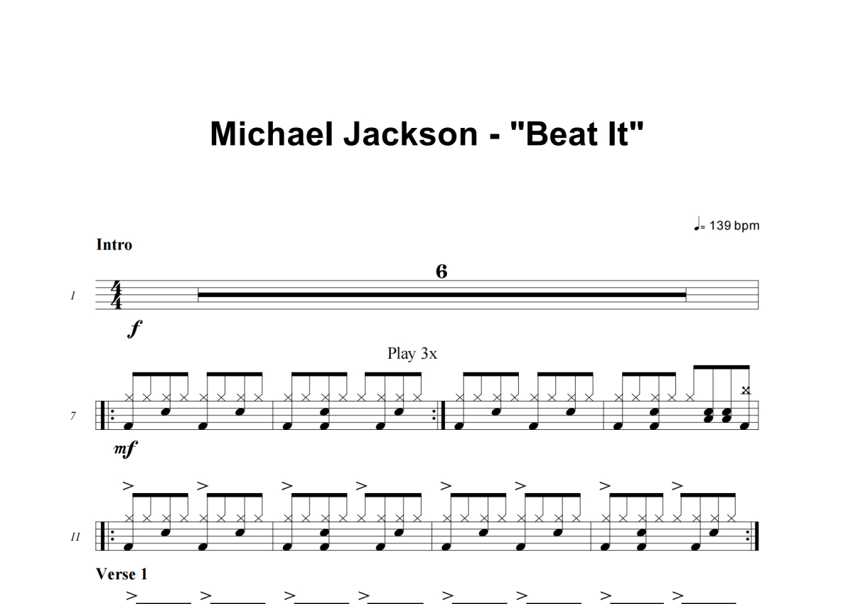 Michael Jackson《Beat It》鼓谱 - 架子鼓谱