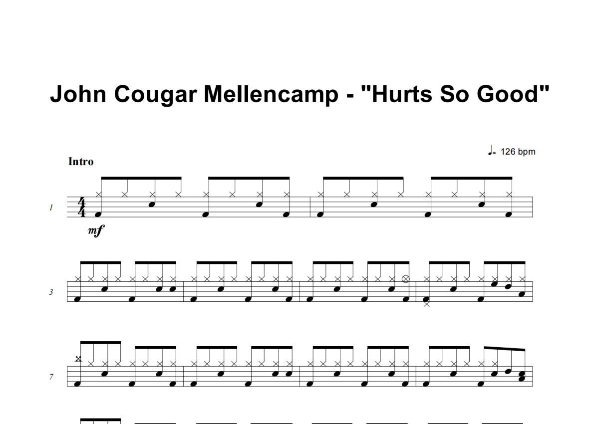 John Cougar Mellencamp《Hurts So Good》鼓谱 - 架子鼓谱