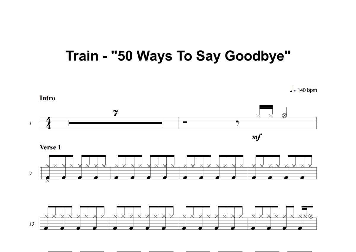 Train《50 Ways To Say Goodbye》鼓谱 - 架子鼓谱