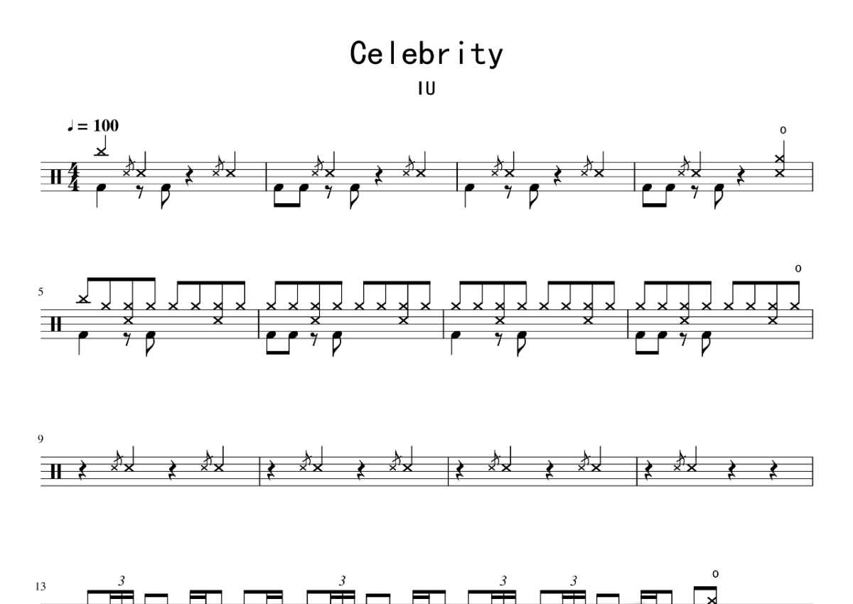 IU《Celebrity》鼓谱 - 架子鼓谱