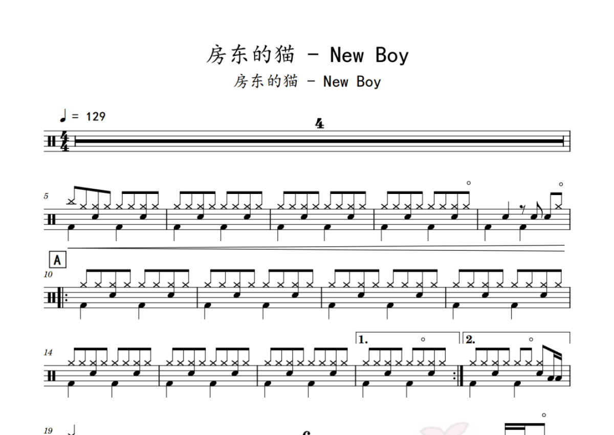 房东的猫《New Boy》鼓谱 - 架子鼓谱