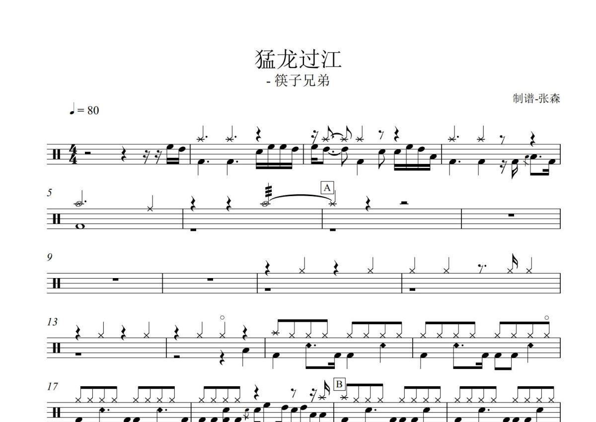 筷子兄弟《猛龙过江》鼓谱 - 架子鼓谱