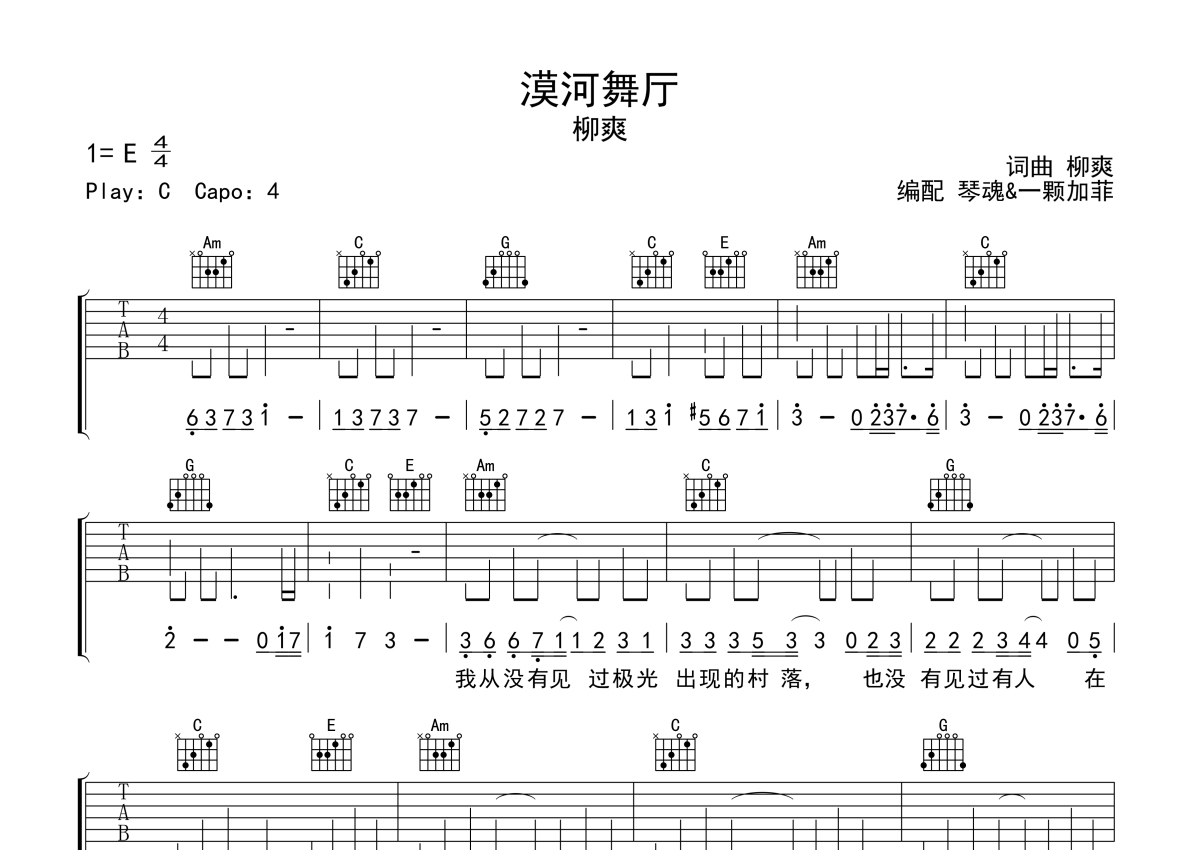 柳爽《漠河舞厅》吉他谱 - C调弹唱六线谱
