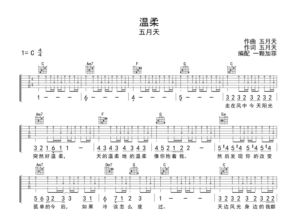 五月天《温柔》吉他谱 - C调弹唱六线谱