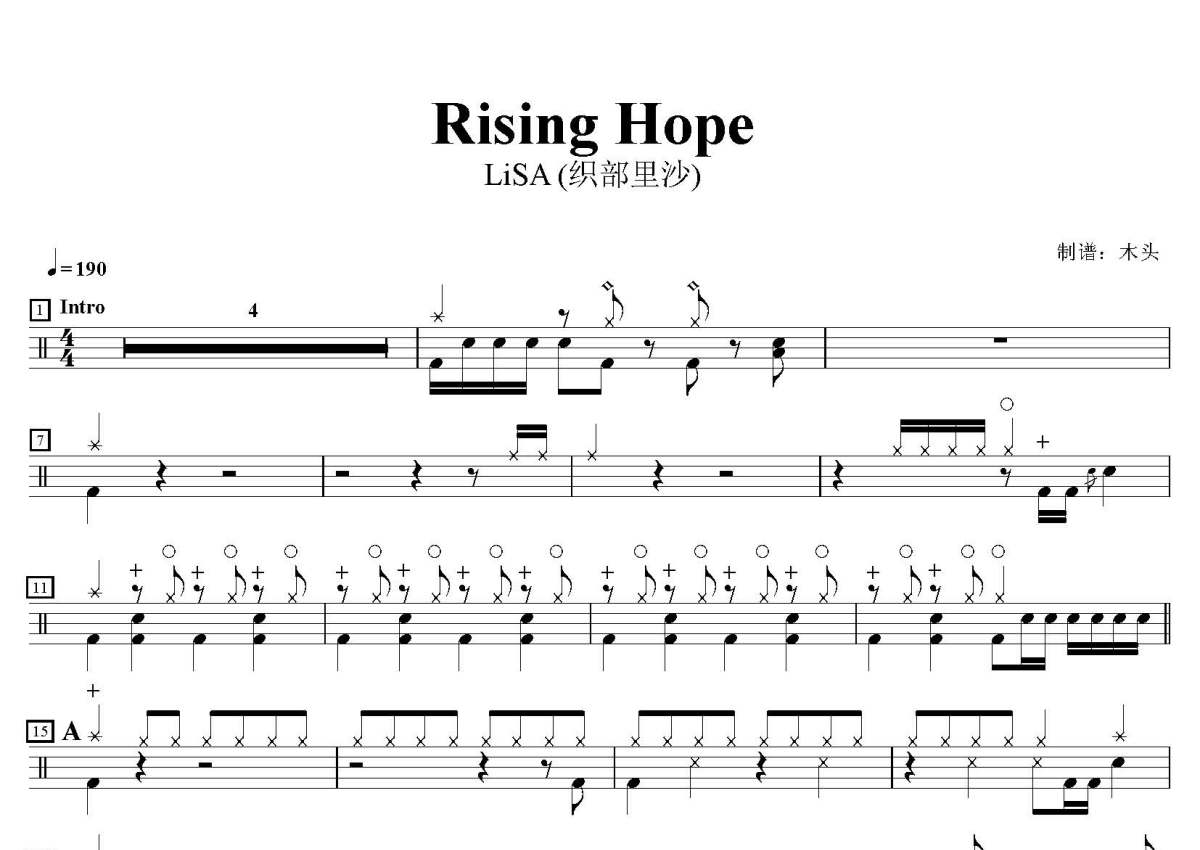 LiSA (织部里沙)《Rising Hope》鼓谱 - 架子鼓谱